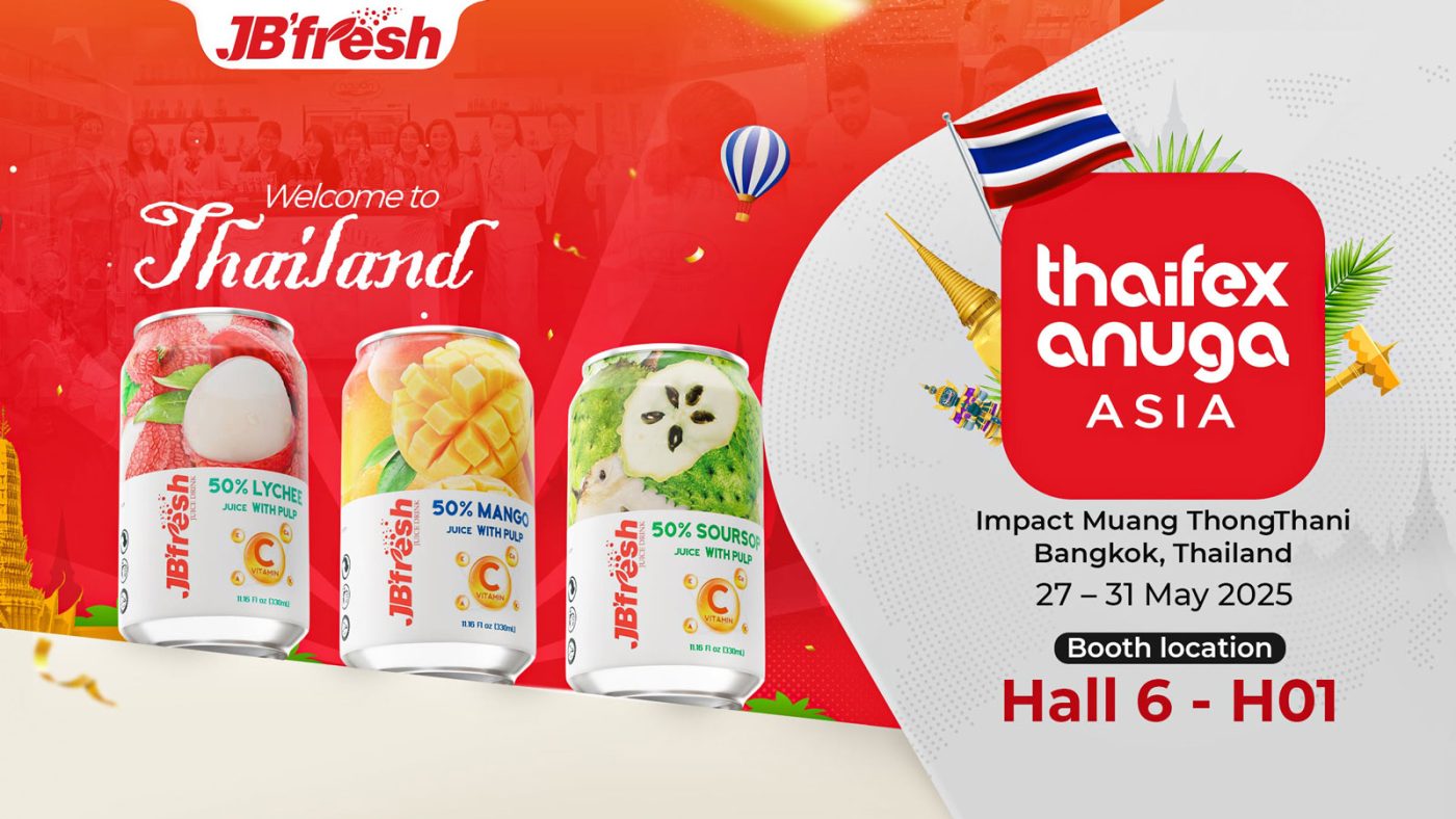 14 Apr Exhibitions & Events JbFresh to Showcase Vietnam’s Tropical Beverage Excellence at THAIFEX – Anuga Asia 2025 December 27, 2025 By Jb'Fresh JbFresh is thrilled to announce our participation in THAIFEX – Anuga Asia 2025, one of the most anticipated international exhibitions i...Continue reading